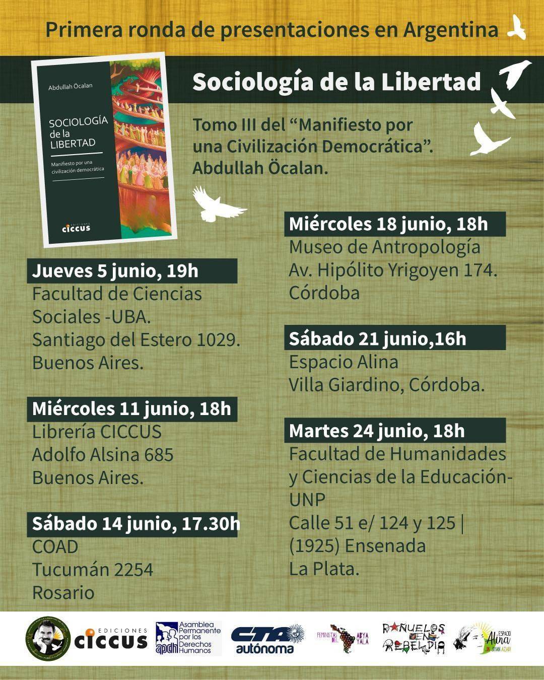 Durante el mes de junio el libro, publicado recientemente en el país por la editorial Ciccus, se presentará en las ciudades de Buenos Aires, Rosario, Córdoba, Villa Gardino (provincia de Córdoba) y La Plata.