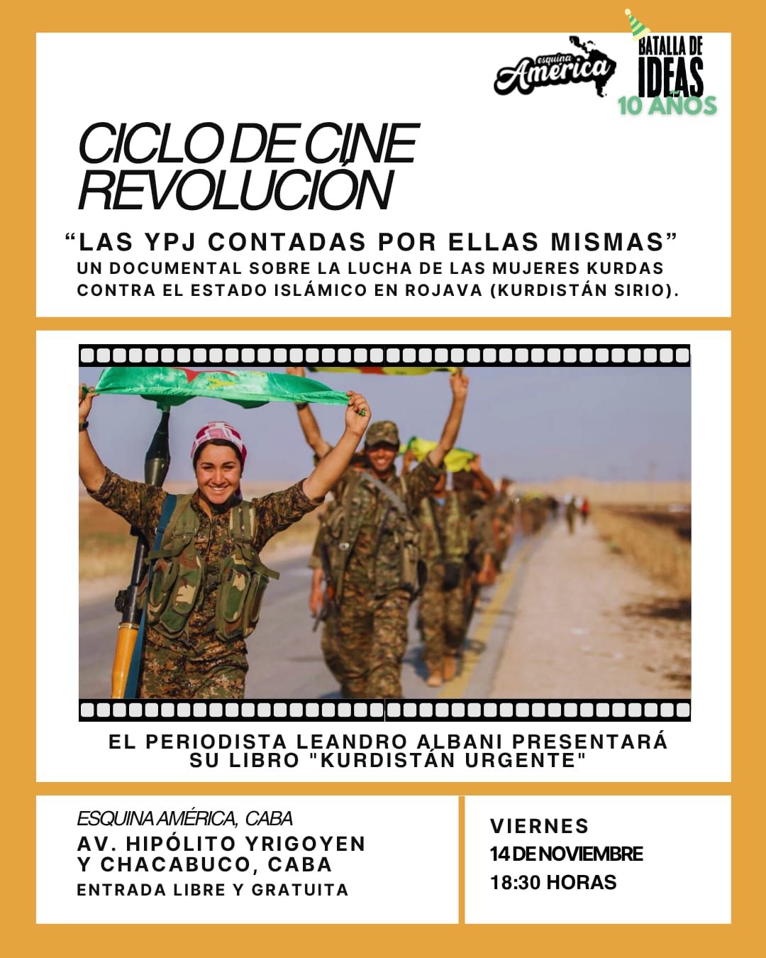 El viernes 14 de noviembre, en Buenos Aires, capital de Argentina, se presentará el libro “Kurdistán urgente. Historias de un pueblo en resistencia”, del periodista Leandro Albani, al mismo tiempo que se proyectará el documental “Las YPJ contadas por ellas mismas”.