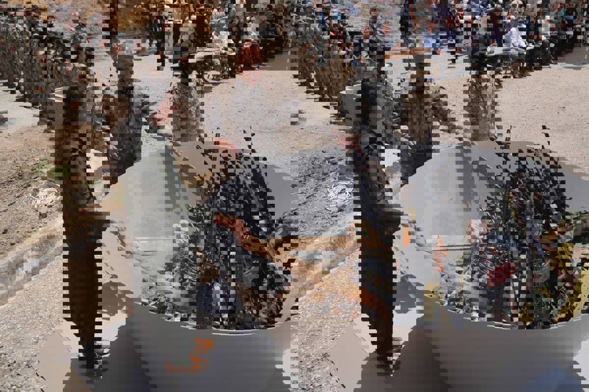 -Tras atravesar el distrito de Dukan/Dokan, giramos a la izquierda hacia las escarpadas montañas. A juzgar por las medidas de seguridad en la carretera y la disposición de todo, nos damos cuenta de que hemos llegado al lugar de la ceremonia.
