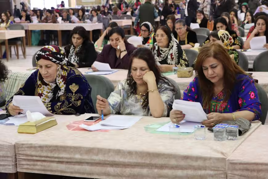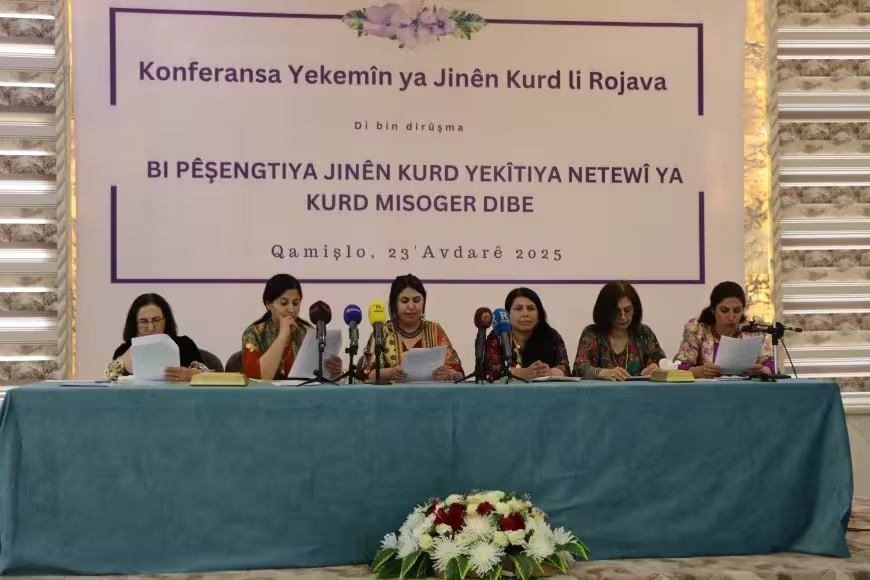 La Conferencia de Mujeres Kurdas de Rojava, celebrada bajo el lema “La unidad nacional kurda se logra bajo el liderazgo de las mujeres kurdas”, tuvo lugar con la participación de 300 mujeres de Rojava y de todas las regiones de Siria. Entre las participantes había representantes de partidos políticos kurdos, consejos de mujeres, instituciones de la Administración Autónoma y organizaciones de la sociedad civil de mujeres, así como mujeres de círculos políticos, sociales e intelectuales.