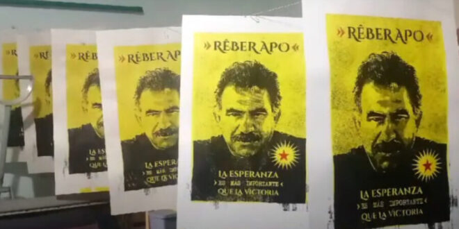 En el marco de la campaña internacional “Libertad para Öcalan, solución política para la cuestión kurda”, en Colombia realizaron una serigrafía con el rostro del líder kurdo con la frase “Rêber Apo. La esperanza es más importante que la victoria”.