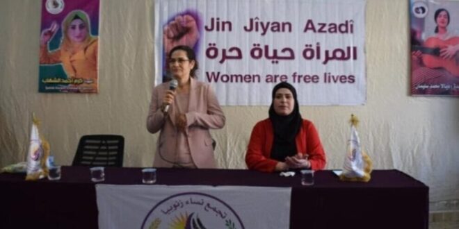 La reunión tuvo lugar en el pabellón deportivo del estadio de la ciudad de Raqqa y contó con la participación de comités de mujeres de organizaciones de la sociedad civil, las Fuerzas de Seguridad Interna de las Mujeres, la Asociación de Solidaridad Social de Afrin y representantes de partidos políticos.